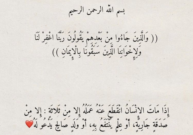 •اللهم أرحم من توسدت أجسادهم الأكفان وأجعل قبورهم خير مسكن تغفو به أعينهم حتى تقوم الساعة وارحمنا إذا صرنا إلى ما صاروا إليه.