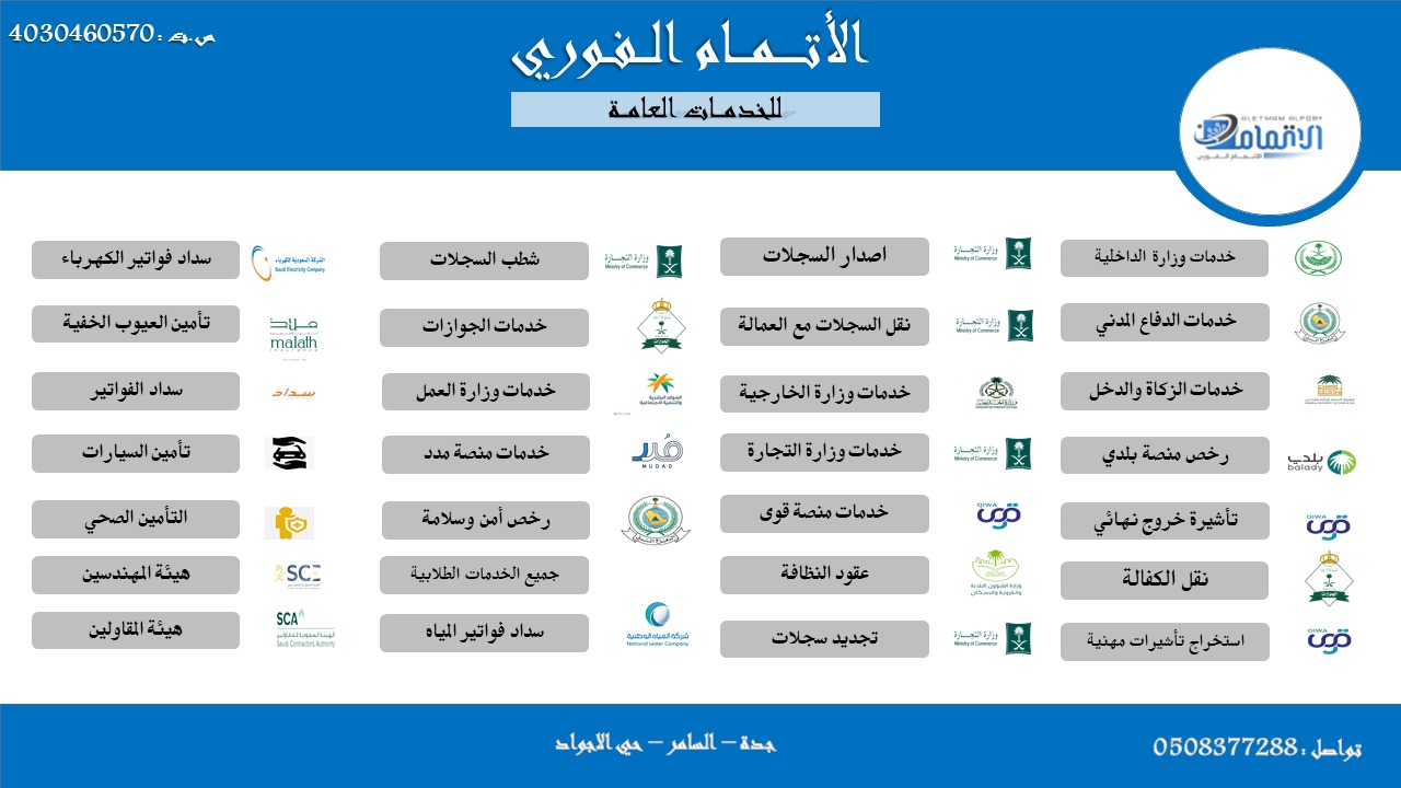 من نحن : مؤسسة تأسست عام 2018 في مجال خدمات الأعمال والدعم المباشر لقطاع الأعمال ، وتقدم توجيهات وحلول متكاملة وسريعة لجميع مشاكل المؤسسات والشركات حيث تمتلك فريق عمل مؤهل يقوم بوضع خطط منهجية على ضوئها يتم الإسراع في الحلول ، كما تعتني هذه الشركة بتدريب الكوادر وتأهيلها للمنشآت بشكل عام نعمل ضمن طاقم اداري ذو كفاءة قادرة على الانجاز وارضاء العميل رؤيتنا : أن نكون المؤسسة الرائدة في مجال خدمات الأعمال بأعلى جودة في المملكة كما نسعى للتفوّق في كل ما نقوم به عن طريق تنفيذ الأعمال على الوجه الأكمل وبطريقة فعّالة ومنتجة وبما يتوافق مع القيم التي نؤمن بها الأتمام الفوري صديقك المباشر في جميع اعمالك.